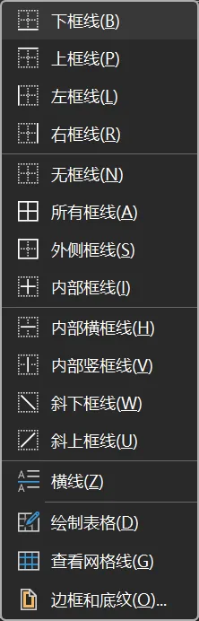 (1)选择边框中的边框和底纹